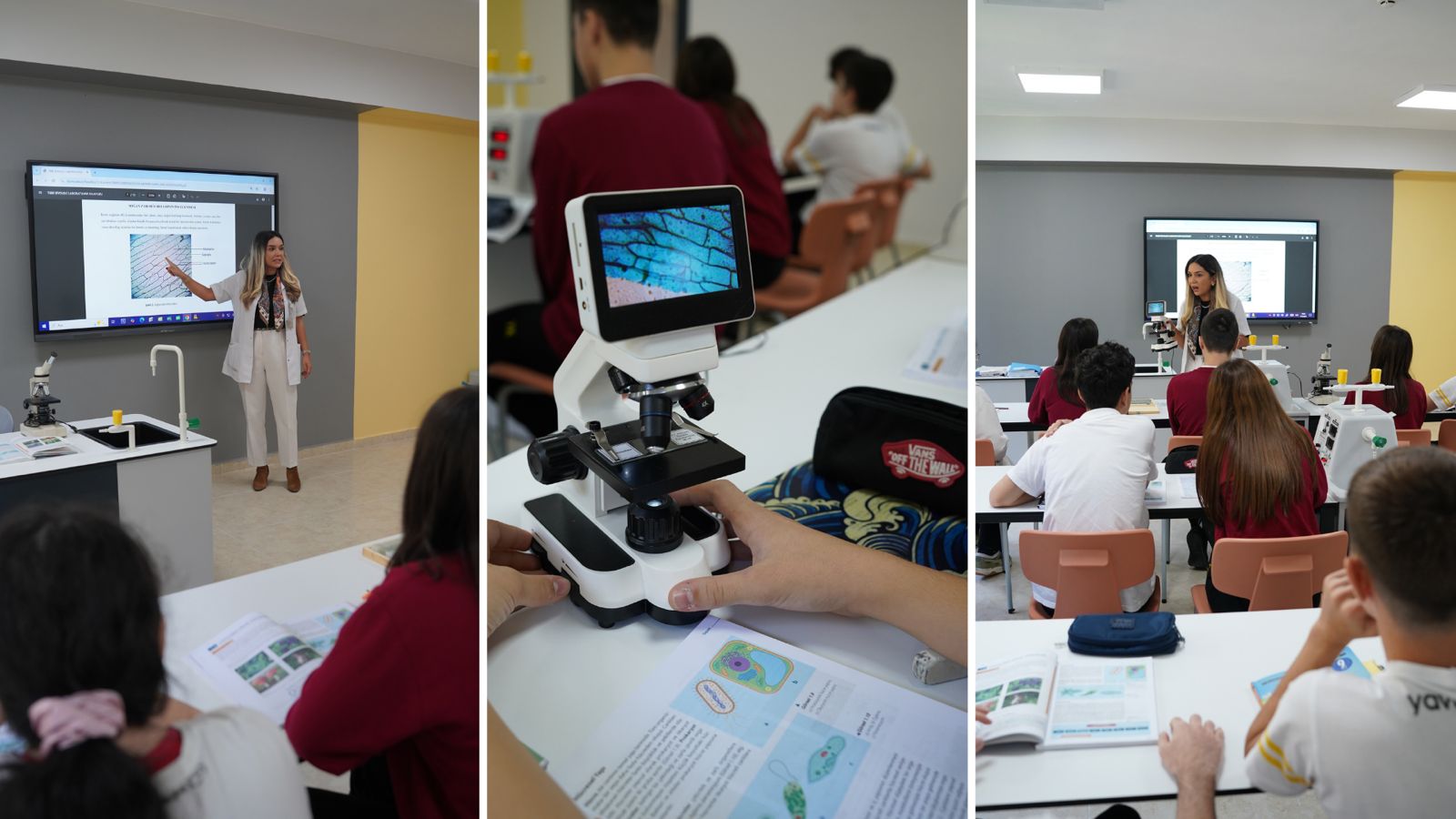 Öğrencilerimiz, canlıların ortak özelliği olan hücresel yapıyı inceleyerek prokaryot ve ökaryot hücre örneklerini mikroskopta karşılaştırdılar.